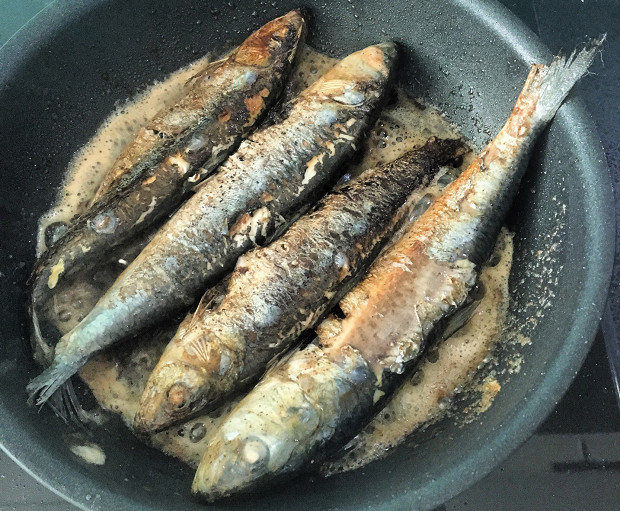 При слове «сардины» на ум большинству из нас приходят консервы, но на самом деле свежие сардины, жаренные на гриле, несравнимо вкуснее насмерть промаринованных тушек из банки. В Португалии и Испании их жарят самым простым домашним способом — с оливковым маслом, розмарином и крупной солью. Наиболее сложное в этом элементарном рецепте — отыскать сардины, хотя бы мороженые. Но можно приготовить тем же способом любую доступную рыбу похожего калибра — к примеру, корюшку или хамсу.