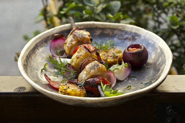 Шашлыки из рыбы в старейшем московском ресторане армянской кухни «Ноев ковчег» — вопрос почти религиозного принципа, большинство рыбного поголовья привозят из озера Севан, недаром ассорти шашлыков подают в деревянном ковчеге. Набор из осетрины, семги, стерляди и королевских креветок отличается мягкостью и переливается оттенками пряного вкуса. Секрет в особом маринаде, в который вместе с растертой помидорной мякотью добавляется взбитый белок, отчего в процессе жарки каждый кусочек покрывается тончайшей бронзовой патиной, оберегающей сочную мякоть.