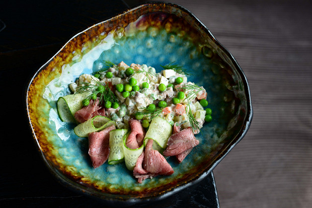 Представить себе оливье, лишенный соленого огурца, невозможно, даже если это непростой салат оливье, где за мясную сущность отвечает ростбиф и где используется чеснок и замороженный зеленый горошек. Рецептом с нами поделился шеф-повар ресторана «Ваниль» Алексей Беликов.
