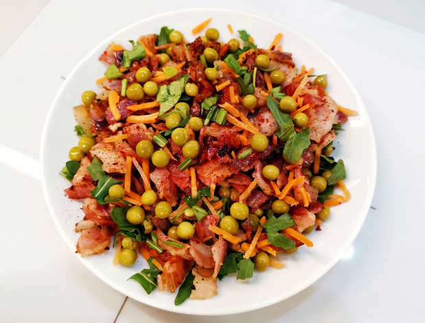 Салат с беконом и горошком