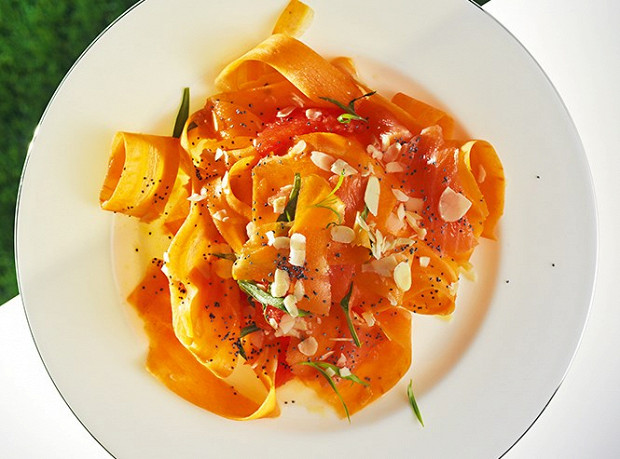 Яркое по колористике — все оттенки рыжего, и богатое по вкусовым нюансам блюдо. Кислота, сладость, соль, легкая горчинка — все это органично сплетено в феноменальной силы вкусовой аккорд.