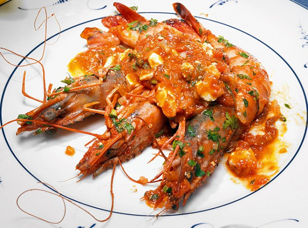 Вот это просто выдающийся рецепт, его даже можно было бы назвать итальянским по монументальной точности, если бы он не был греческим. Если вам удастся соблюсти баланс между сладковато-кислым вкусом томатов и солоновато-кислым вкусом феты — вы будете вспоминать это сочетание в союзе с креветками еще долго после того, как все креветочьи хвосты будут обглоданы.