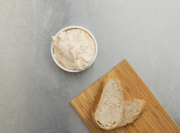 Кисловатая намазка из сыра фета, сделанная по распространенной в Средиземноморье методе обращения с мягким сыром. Главное в этом рецепте — легкость, обеспечиваемая кисловатой инъекцией уксуса.