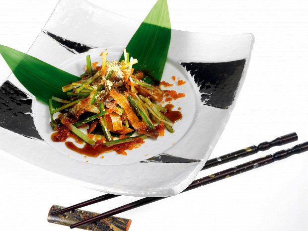 Сякэ-кава-сарада: салат из овощей с жареной кожей лосося