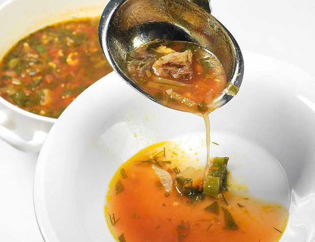 Зеленый борщ с салом