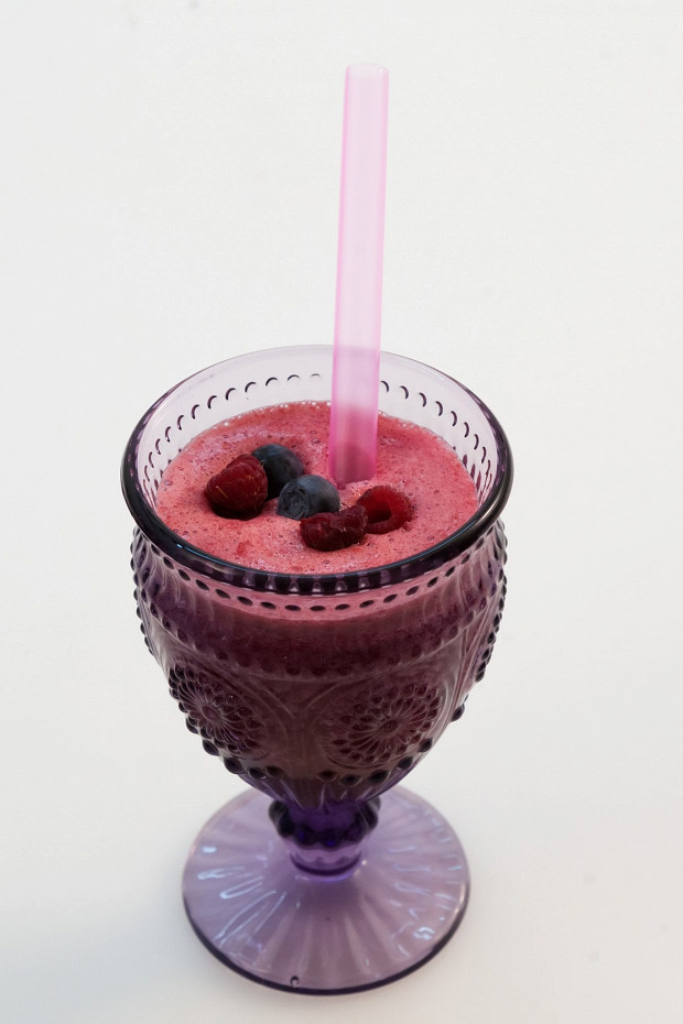 А этот рецепт, наоборот, вобрал в себя все летние вкусы. Сок делается из свеклы, ананаса, яблок и шпината, а за плоть отвечают голубика, малина, смородина и банан.