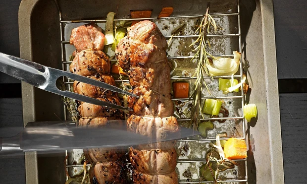Простейшее блюдо, которое, однако, требует тщательного выбора мяса: это должна быть корейка или шейка. А еще вам придется рассчитать время готовки: мясу сначала предстоит провести 2 часа в холодильнике, а затем 2 часа в тепле, чтобы деликатный оливково-лимонно-розмариновый маринад максимально впитался в свиную плоть.