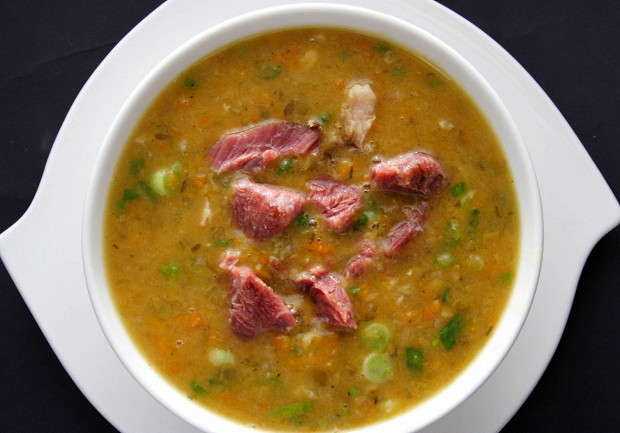 Основа этого супа — говяжий бульон. При таком раскладе копчености при желании можно уже и не класть — говядина придаст гороху нужный градус.