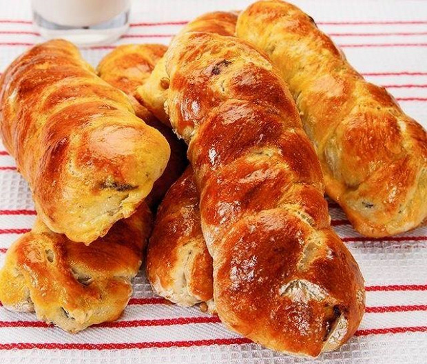 Нарядные румяные булочки без начинки. Картошка добавляется в дрожжевое тесто вместе с лимонной цедрой и изюмом. Форма булочки не важна — если не умеете плести косички, пеките просто круглую булочку.