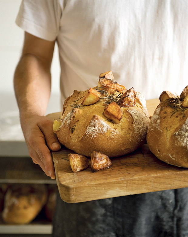 Картофельный хлеб на пшеничной закваске с кусочками картошки внутри и снаружи. Рецепт взят из книги «Домашняя пекарня. Полное руководство по выпечке от профессионалов».