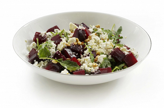 Яркая, еще не загрубевшая осенняя свекла — выдающаяся основа для межсезонных салатов. Там, где важен микс сладкого и соленого, упругого и нежного, в помощь ломтикам отваренной свеклы берется фета, ее аморфная текстура к тому же поможет салату слиться с заправкой. Рукола тут и ради зеленого цвета, чтобы на тарелке получился практически итальянский триколор, и ради ее особенной горчинки — чуть резковатой, но приятной и хорошо оттеняющей сладость свеклы. Заслуга кедровых орехов — хруст, сытность и декор. А заправка самая базовая: соль, перец, оливковое масло и лимонный сок. Сами по себе ингредиенты в тарелке поют таким разноцветным хором, что никакого более сложного соуса не требуется.
