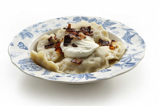 Из тыквы получается благодарная начинка: сладковатая, нежная, как будто ярко-рыжий крем. Недаром итальянцы с тыквой любят делать пельмешки-тортеллини, а вареники — их ближайшие родственники. Сладость тыквенной мякоти может показаться монотонной, ей обязательно нужен какой-нибудь контрапункт. Тут в этой роли выступают поджаристые шкварки из бекона: в них и жирок, и запах копченостей, и хрустящая текстура.