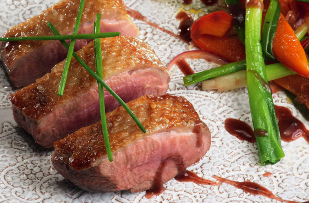 Утиная грудка сама по себе совершенная вещь, и главное — не сделать лишних движений и не испортить ее. Не сжечь кожу, не пересушить мясо. Аккуратно управляясь с температурой сковороды, можно с легкостью добиться обоих результатов.