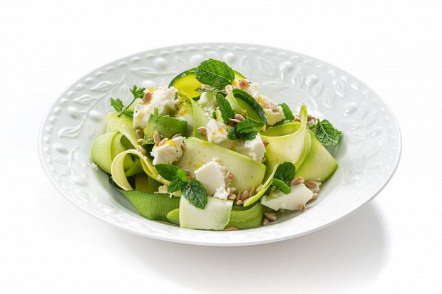 Идеальный летний салат, который благодаря круглогодичным сочным цукини, лежащим в супермаркетах, можно готовить когда угодно. Главное, чтобы они были маленькими, звонкими и сочными.