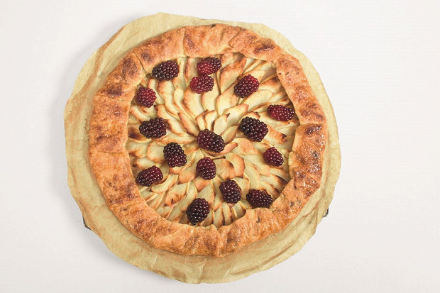 Нарядный яблочный пирог с небольшими усложнениями — понадобятся ежевика и миндаль.