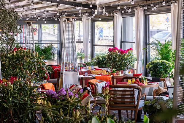 Ближневосточный ресторан Аркадия Новикова устроил перформанс в стиле райского сада: все открытое пространство ресторана буквально утопает в ухоженных зарослях и букетах алых и лиловых цветов. Можно удобно устроиться на украшенных пестрыми узорами мягких диванах и с падишахским размахом пробовать мезе, барашка из дровяной печи и кофе по-восточному, погружаясь в восточную негу.