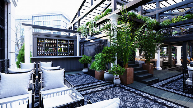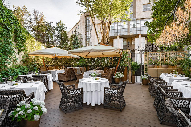 Масштабный ресторан подходит к вопросу отдыха на открытом воздухе с размахом: у него целых три веранды. Арка при входе в камерное патио увита фиолетового-голубой глицинией. Рядом готовая фотозона — на фоне стены с тропической зеленью установлены качели. Вторая терраса в стиле шале находится в глубине и работает в любую погоду. Здесь много света, проникающего сквозь стеклянный потолок, зелени, колонн и геометрических форм. Третье летнее пространство расположено на крыше трехэтажного особняка. Отсюда открывается вид на Сити и переулки Плющихи. Знакомство с кухней шефа Андрея Жданова – отличный повод забронировать столик.