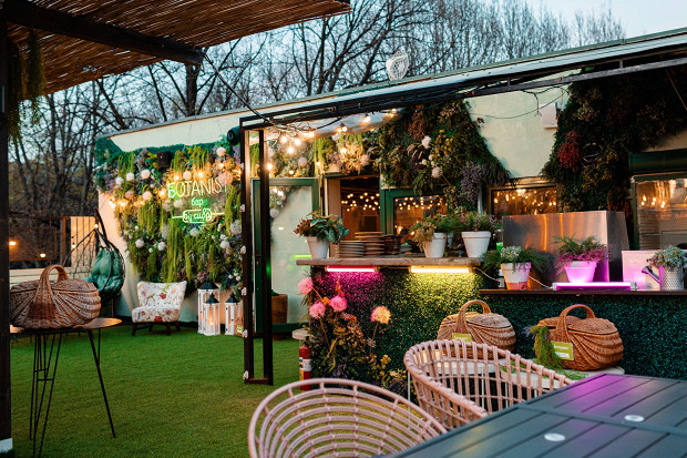 За настроением воскресного утра и мечтами об идеально ровном загаре отправляйтесь на террасу ресторана Botanist, что расположен на крыше входной галереи «Аптекарского огорода». Зеленый газон под ногами, навес от солнца с инсталляциями из трав и винтажных лампочек, барная стойка с жасминовым джин-тоником, шезлонги и кресла-качели, цветочные грядки и кроны вековых деревьев на фоне — в ощущение загородного отдыха и цветущего сада Botanist попадает снайперски.