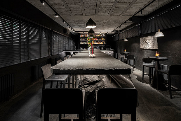 Образцово отреставрированный памятник конструктивизма, дом Наркомфина мгновенно вписался во все экскурсионные туры по городу. Хотя в самом доме даже заплативших за посещение дальше холла и коридора не пустят, поскольку элитные квартиры-модули уже заселили очень непростые жильцы. Зато в ресторан «Коллектив Наркомфина», расположившийся в двухэтажной прачечной, неотъемлемой части общего ансамбля, пускают всех желающих. То, как новые хозяева воссоздали из руин великую архитектуру, вызывает восхищение: интерьер Натальи Белоноговой (с чем-чем, а с бетонными конструкциями она обращаться умеет), мотивы морского дна, стилизованная под баухаус мебель, узнаваемые шрифты. В съедобной части тоже все сделано стильно, без слишком прямых цитат, но для этих стен органично: в меню красиво поданная итальянская кухня, в десертах — чуть больше отсылок к авангарду, например муссовый торт «Красный клин» по мотивам коллажа Эль Лисицкого, а вот коктейльная карта — интеллектуальная игра в «было-стало», в ней присутствуют коктейли «Ле Корбюзье», «Бубновый валет» и прочие отсылки для тех, кто понимает.