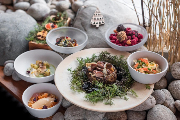 Интересную возможность посмотреть на русскую кухню в объективе стиля nordic дает праздничный сет ресторана Bor. Нордический стиль — это умение выжать максимум из неярких северных продуктов, преобразовать их текстуру и эстетизировать подачу. В сете «Настроение — Новый год!», который действует до конца новогодних каникул, шеф-повар Андрей Федосеев берет стереотипные праздничные блюда и творит с ними настоящие чудеса: икра горбуши с копченым маслом и печень трески с перепелиным ферментированным яйцом подаются в хрустящих тарталетках, в ассорти солений компанию нижегородским белым груздям составляют сочинские черные лисички, заготовленные поварами ресторана еще летом, осетрине ассистирует копченая белая морковь и соус из томленой сметаны. Оливье тоже удивительный — из пяти видов печеных корнеплодов, мяса цесарки и хвостов ростовских раков. В сопровождение можно взять вино, но интереснее — собственноручно сделанные шеф-поваром настойки, таких вы точно нигде больше не попробуете.