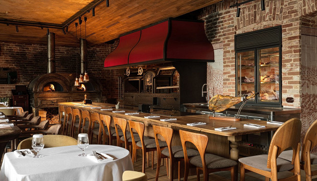 Иберийская кухня, организованная на Страстном бульваре усилиями великого шефа и ресторатора Адриана Кетгласа. В какую бы погоду вы ни гуляли по бульварам, зайти сюда попробовать кроличьи почки в хересе, эмпанаду с ягненком и кролика с шоколадом — всегда хорошо.