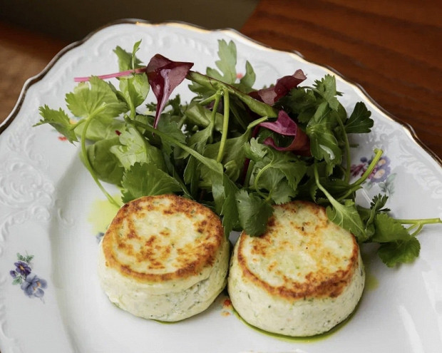 Идеальные сырники для тех, кто жить не может без этой еды, но не позволяет себе сладкого. Соленые сырники с копченым лабне! В составе — творог, сулугуни, шпинат, красная икра, копченый лабне и микс трав.