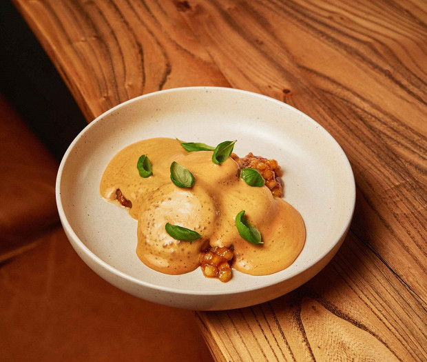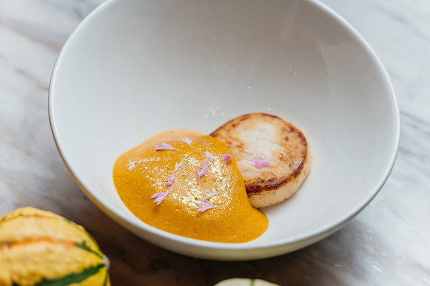 Местные сырники — сложносочиненная история, где сохраняется сырниковая суть, но к ней добавляется еще множество вкусов. Готовят их на рисовой муке, а панируют в кукурузной — за счет этого у сырников получается отменный румянец. Подают с вареньем из сливы, чили и эстрагона, со сметаной и миндалем.