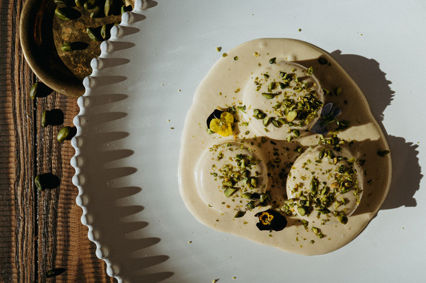 В итальянском ресторане и сырники должны быть с приветом из Италии. На завтрак тут подают вроде бы обычные сырники, где есть и сметана, и ваниль. Но чудо происходит, когда к ним добавляются сицилийские ноты в виде фисташкового пралине и крема. В итоге получается не совсем даже завтрак, а полноценный десерт.