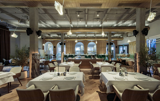 Проект из семейства Restaurants by Emin Agalarov, в котором под присмотром шефа Кирилла Бергера средиземноморская кухня смешалась с азиатской. Панорамный вид на Саввинскую набережную и работа по пятницам и субботам до двух ночи способствуют тому, чтобы перед сном устроиться у окна и съесть порцию карпаччо из гребешка, брускетту с крабом и креветками и ньокки с томленой уткой. Дневное и ночное меню устроены одинаково.