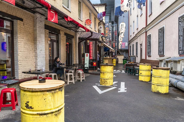Один из самых обаятельных московских дворов с японской едой и алкоголем, со столами-бочками и фонариками, сияющими под небом. Двор узкий и маленький, а потому создается ощущение, что тут всегда вечеринка.