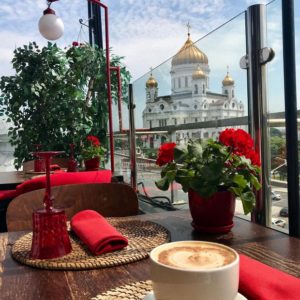 Ресторану повезло: он находится на одной из самых красивых московских площадей, у Пречистенских Ворот. Местная веранда позволяет увидеть ее с лучшей точки, так что берите какую-нибудь летнюю еду вроде каре ягненка, запеченного на углях, и сидите так целый день.
