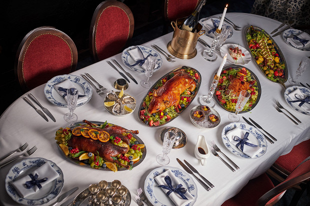 Известный шеф Андрей Жданов и команда одного из самых светских ресторанов Москвы готовы снять с ваших плечей все новогодние хлопоты: тут появилось огромное меню праздничных блюд, которые вам привезут домой в самом лучшем виде (предзаказ до 26 декабря). Каждое блюдо рассчитано на большую компанию и продумано так, чтобы оно стало украшением новогоднего стола. Среди самых интересных позиций — свежие устрицы, карпаччо с йогуртовыми лепешками, закусочные эклеры с крабом в тайской глазури, «Мимоза» с подкопченым лососем, ассорти роллов с черной икрой и сусальным золотом. На горячее предстоит нелегкий выбор между уткой в апельсиновом соусе, лопаткой ягненка или запеченным поросенком. Среди десертов — всеми любимые «Наполеон» и «Прага».