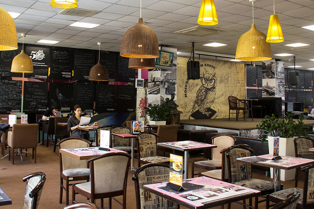 В «Литературном кафе» при «Московском Доме книги» за чашкой кофе можно погрузиться в исторические события, описанные в романах, послушать лекции, посетить презентации авторами своих книжных новинок, поучаствовать в литературном квесте или перформансе. Обстановка напоминает скорее не камерное кафе, а большую ведомственную столовую, зато места во время наплыва читающей публики на бенефис какого-нибудь звездного литератора всем хватает. Да и цены вполне себе демократичные: завтрак с творогом, кофе и круассаном обойдется всего в 180 рублей.