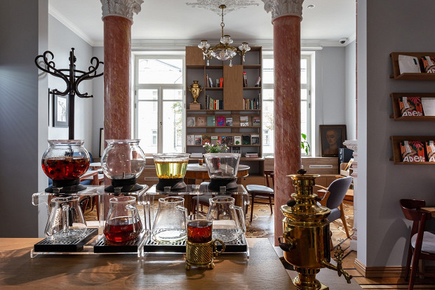 Та самая «Нитка», заполучить чайную карту от которой считают важной составляющей имиджа самые продвинутые московские рестораны, возрождает в Центре Вознесенского традиции старинных московских чайных. Интерьеры соответствуют: камины, лепнина, колонны. Чайную карту можно читать как поэму о той России, которую мы потеряли: тут и купеческий пуэр, и тизан из брусничных листьев, и белый чай из почек. Наливают его в пузатые чайники или в стаканы с антикварными подстаканниками. А поскольку чайные до революции были еще и центром культурного досуга, то ассортимент книг тут богатый: основная масса посвящена чаю и традициями чаепития разных стран, но есть также русская классика и современная проза.