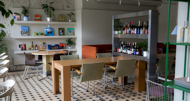 Многие помнят «Берлин» еще в старом формате — небольшой кофейни при книжном магазине «Республика» на Патриарших прудах. Сейчас же это гастрономическое пространство, как будто перенесенное на Цветной бульвар из берлинского Митте, с замесом из винтажа и остромодной дизайнерской мебели, артефактами и художественными изданиями, спешелти-кофе и органическими винами. Берите «Митте-латте», карривурст, как из берлинских киосков, и погружайтесь в изучение архитектурных дайджестов и альбомов Дрезденской галереи.