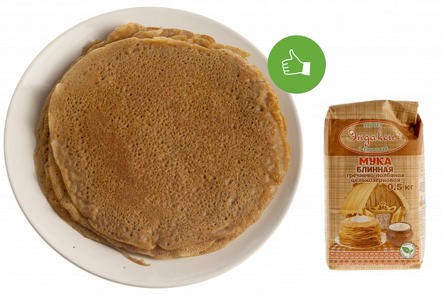 Половина понравившихся нам блинов сделаны из готовых смесей, где в ход идет все содержимое пакета и куда почти ничего не надо добавлять. Это смеси «Тестов», оба варианта марки «Печем дома» и «Бейкервиль». Также неплохими оказались блины из блинной муки «С.Пудовъ». Удивительными и тоже вкусными были блины из гречнево-полбяной цельнозерновой муки «Эндакси».