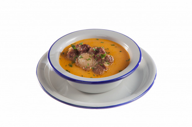 Густой коллагеновый бульон с ярким говяжьим, даже молочным вкусом. Мясо мягкое, легко отделяется от кости, сочное, тает во рту. Очень нарядный, красивый, наваристый и полезный суп.
