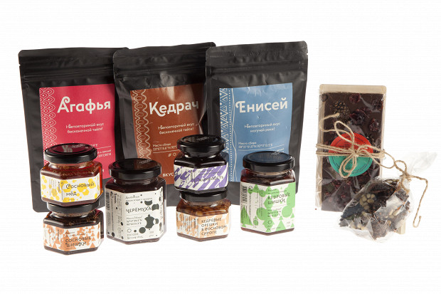Травяные чаи, шоколад с кедровыми шишками, протертые ягоды, сосновый мед, варенья из сосновых и кедровых шишек, кедровые шишки в сиропе, Красноярский край