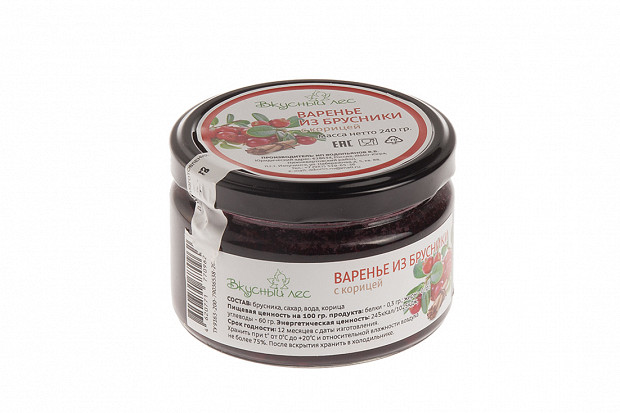 Бруснично-коричное варенье компании «Вкусный лес», сделанное в поселке Излучинск Нижневартовского района: не слишком густое, зато вкусное. В чай добавить — и будет хорошо. Та же компания выпускает соленые грузди и маринованные белые, кедровое масло, а также другие варенья — в том числе из одуванчиков. Будете в Югре — попробуйте.