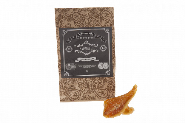 Это десерт, который можно купить в Смоленске в сувенирных лавках, а также (что хорошо) в туристическо-информационном центре «Смоленский терем». Рецепт — старинный, XVIII века: груши и яблоки, залитые сахарным сиропом и подсушенные. Наш главред попробовал их на одной туристической выставке и пришел в полный восторг и от яблочных, и от грушевых. На дегустации грушевых в редакции восторг повторился, но, скажем честно, не нашел отклика в сердцах многих других сотрудников редакции: им показалось, что вкус конфект недостаточно грушевый. В общем, если попадутся на глаза и будет возможность попробовать — решите сами, по душе вам они или нет.