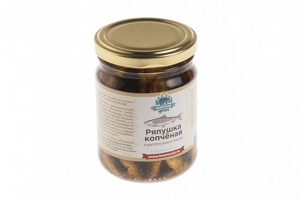 Безоговорочный фаворит этой ревизии: копченая ряпушка, которая продается на базе отдыха «Медвежий угол» в карельской деревне Тивдия в Кондопожском районе. 220 рублей за банку — и это вполне приемлемая цена за продукт такого качества. Плотная, не разваливающаяся, с умом подкопченная, дико вкусная рыба. Мы не успокоились, пока не приговорили всю банку. С ней очень хочется сделать что-то более интересное, чем просто положить на вкусный хлеб. Например, нарезать кусочками и сочинить с ней салат. Да и масло, коего много, в том же салате можно использовать.