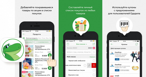 Что есть: удобный поиск продовольственных и непродовольственных товаров по массе категорий (мясо, птица, мясные продукты, рыба, овощи, бакалея и так далее), поиск по конкретным производителям, сортировка по цене за штуку или килограмм или по наименьшему расстоянию до магазина — то есть приложение предлагает пользователям выбор: время или деньги. Особо экономящие и обладающие большим количеством свободного времени могут проложить маршрут по разным магазинам с целью купить все по минимальным ценам. Еще одна нелишняя опция — информация об акциях в магазинах и фастфудах в радиусе 5 км. Допустим, прямо сейчас сахар вам не нужен, но на него дают большую скидку, так почему бы не закупить впрок? А если скидку дают на дорогую рыбу, которую вы обычно не рассматриваете как часть рациона и даже не смотрите в ее сторону в магазинах? Или на продукцию новой компании, которая только-только вышла на рынок?