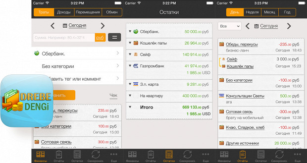 У «Дребеденег» есть и версия для настольных компьютеров и ноутбуков, и она сложнее сконструирована, но это, видимо, от того, что на сайте больше простора, а мобильное приложение требует лаконичного дизайна.