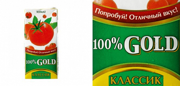 Принятая в России классификация соковых продуктов выглядит так: сок, восстановленный сок, нектар, сокосодержащий напиток и морс. Перед нами нектар — пюре, разбавленное водой. И поскольку закон запрещает добавлять в нектар консерванты, ароматизаторы и подсластители, остается предположить, что слишком сладкий, будто у кетчупа, вкус достался водянистому нектару Gold от помидоров.