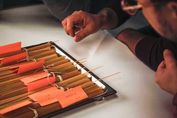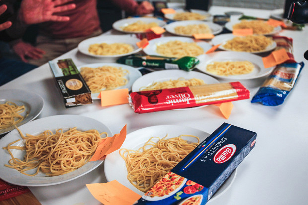 Дегустация проходила следующим образом. Все пачки были пронумерованы. Затем образцы спагетти были обезличены: их вынули из пачек, перевязали и добавили листки с номерами, соответствующими номерам пачек. На листках также было указано время приготовления каждой пасты — то же, что и на упаковках.