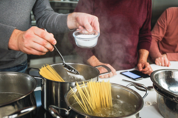 Дзаго: Если добавлять соль в конце, они получаются вокруг соленые, а внутри пресные. Они же твердые, а должны пропитаться солью, поэтому вода должна быть хорошо соленой. И естественно, надо кидать соль, когда вода кипит, потому что если я кладу сразу соль — вода дольше доходит до кипения. А в Италии электричество и газ стоят дорого, поэтому мы повнимательнее смотрим на эти вещи.