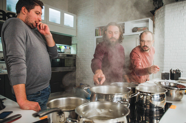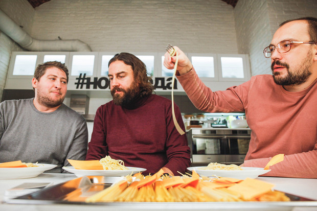 Мирко Дзаго — бессменный с 2001 года шеф «Сыра», одного из самых долгоживущих ресторанов Москвы. Дмитрий Зотов в свое время был шефом итальянской «Оливетты», а сейчас у него, помимо прочего, сеть пиццерий Zotman, где готовят не только пиццу, но и пасту. Со стороны «Еды» спагетти ел главный редактор Роман Лошманов.
