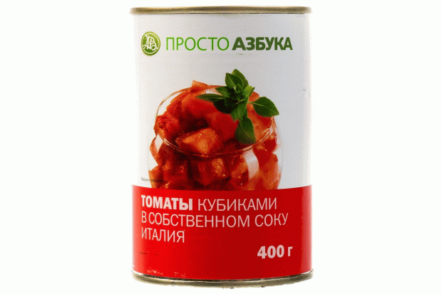Очень красивые помидоры: яркие, сочные, кусочки одного размера, плотные, с мякотью, плавают в густом соке, который скорее напоминает пюре. У них активный помидорный вкус, в котором преобладает сладость, а не кислота. Именно ее ожидаешь от итальянских томатов (кстати, сырье «Просто Азбука» получает с Сардинии).