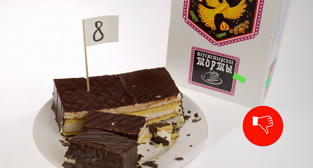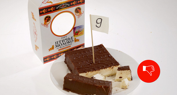 Гуральник: Да. Это не «Птичье молоко». Шоколадная глазурь — надо им сказать, наверное, что это кошмар. Даже и пробовать не буду ее. Суфле на вкус мне тоже не нравится, вкусовые качества чем-то там отдают. Попробуйте.