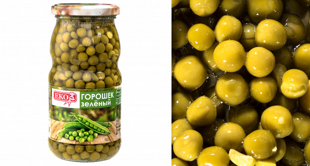 Разнокалиберный горох: есть крупный, есть мелкий, а есть даже полуразвалившийся. Мягкий, как каша, горошину сложно ощутить на языке. И очень-очень крахмалистый и сладкий, вкус родом из детства. В салат не пойдет — сразу развалится, а к говяжьему языку или с яйцом – хорошо. Если вы не любитель яркой текстуры, конечно, а свежая нежная гороховая каша во рту вам, напротив, нравится.